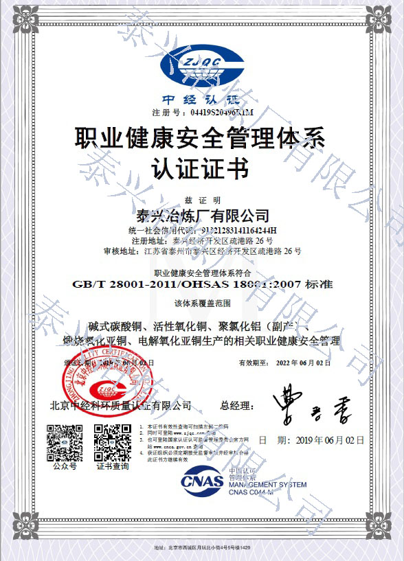 泰興冶煉廠有限公司(原泰興冶煉廠),始建于20世紀(jì)70年代初,現(xiàn)位于江蘇省泰興經(jīng)濟(jì)開發(fā)區(qū)。歷經(jīng)40年的創(chuàng)新驅(qū)動(dòng)、穩(wěn)健發(fā)展,已成長(zhǎng)為一家專業(yè)生產(chǎn)堿式碳酸銅、高純電鍍氧化銅、氧化亞銅、氧化銅、無(wú)水硫酸銅、海綿銅粉及副產(chǎn)品聚氯化鋁(凈水劑)等系列無(wú)機(jī)鹽產(chǎn)品及處置不含氨的氯化銅蝕刻液(HW22)15000噸/年的“國(guó)家高新技術(shù)企業(yè)”和地方性骨干企業(yè)。公司總占地面積3.7萬(wàn)平方米,建筑面積4萬(wàn)平方米,注冊(cè)資本2088萬(wàn)元,固定資產(chǎn)1.2億元,年產(chǎn)值約7億元。